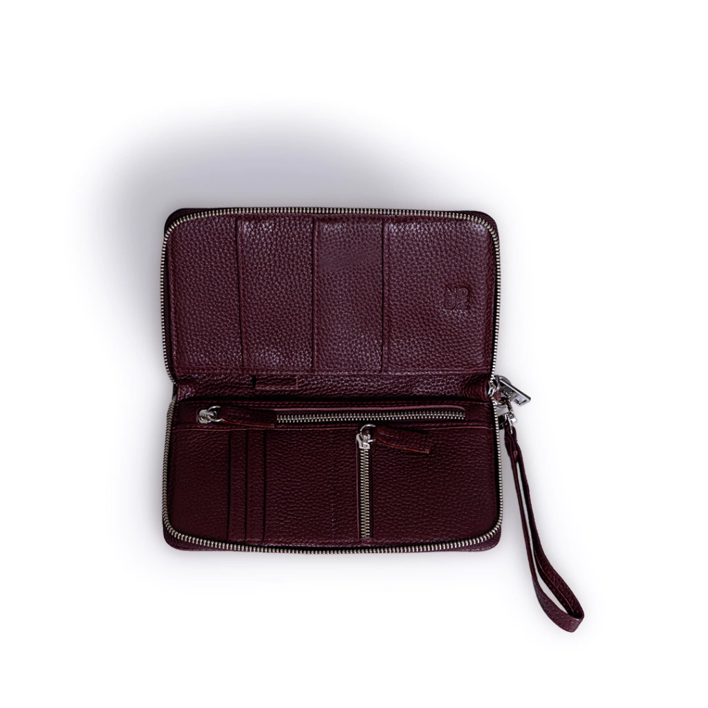 Ideal para aquellas personas que viajan en familia. Tiene divisiones para varios pasaportes, bolsillo externo, cierre interno y lugar para monedas. Íntegramente confeccionada en cuero vacuno.