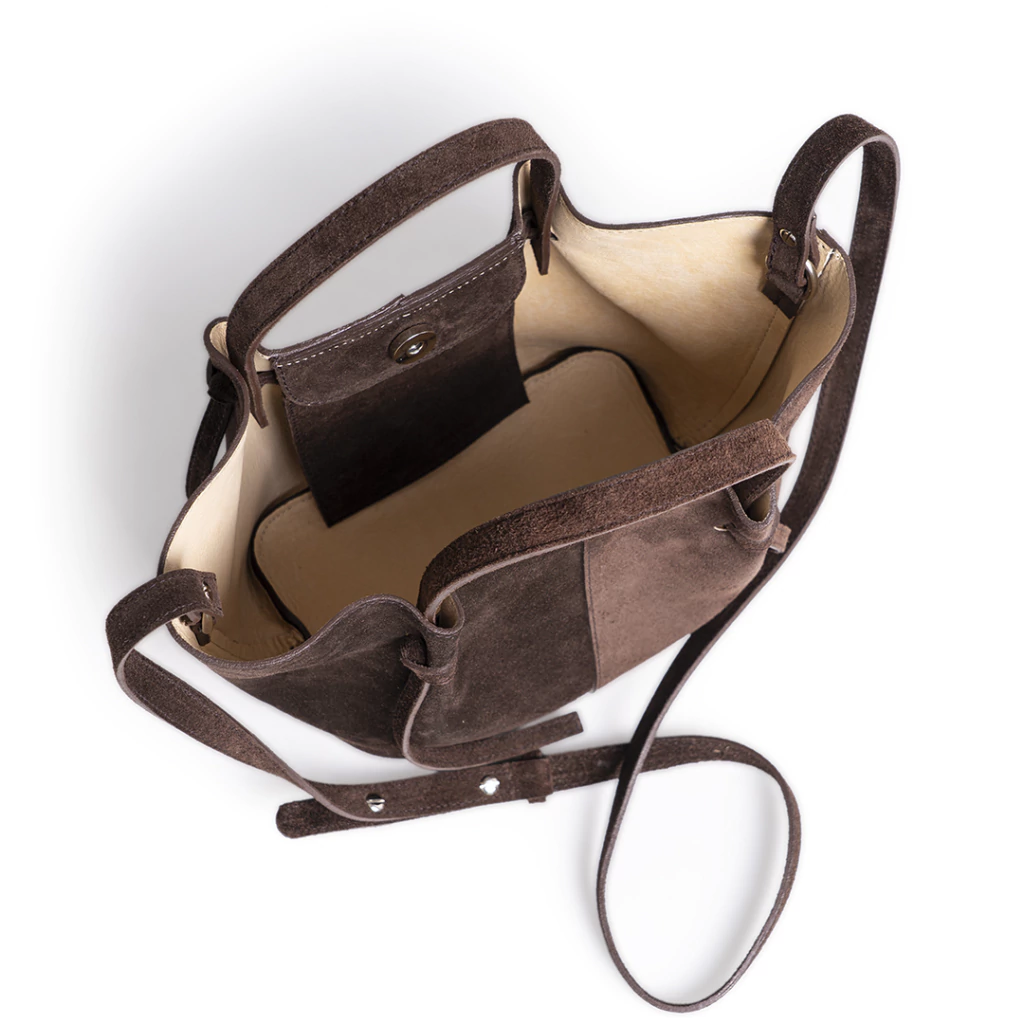 Bandolera de Gamuza. Interior de . Trae un bolsillo interno. Se cierra con broche iman. Correa desmontable.