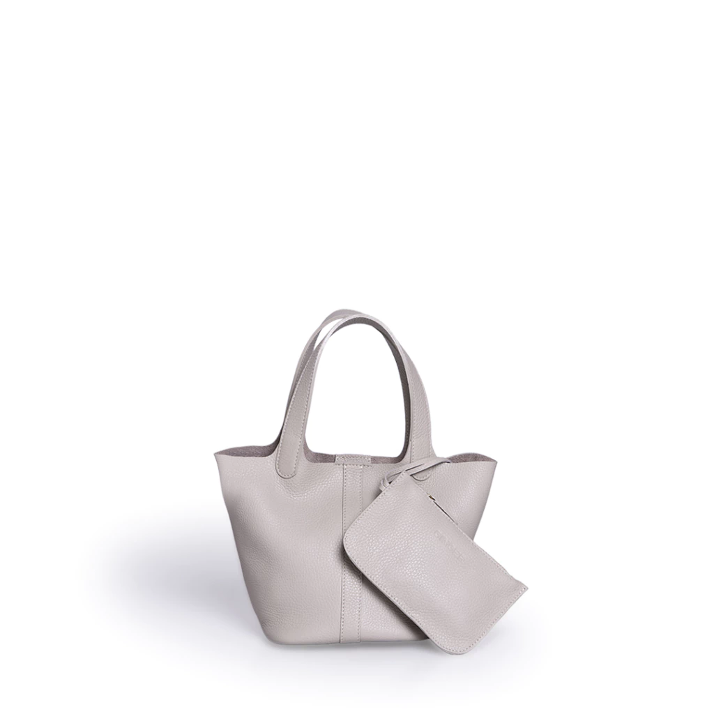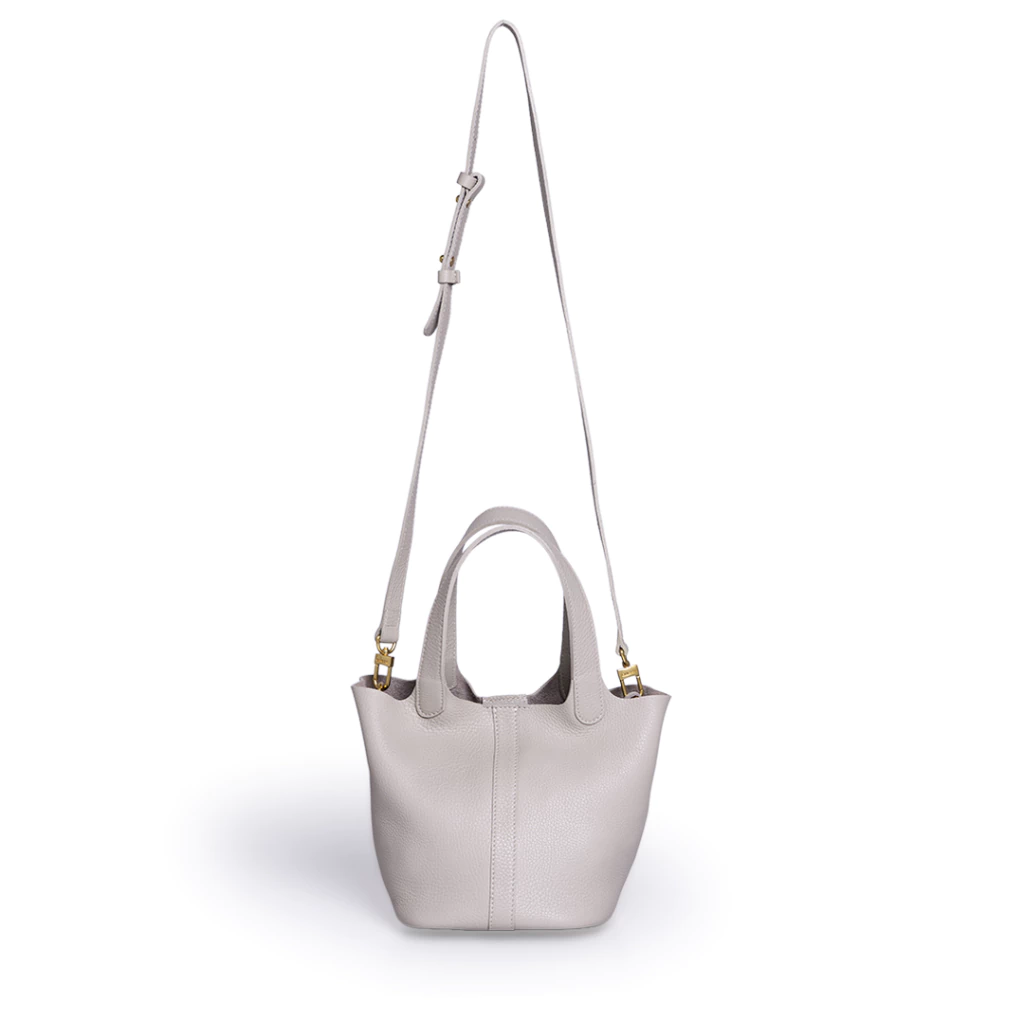 Cartera de cuero graneado. Trae un monedero extraible con cierre. Se puede usar tanto como cartera de mano y bandolera. La correa es extraible y regulable.