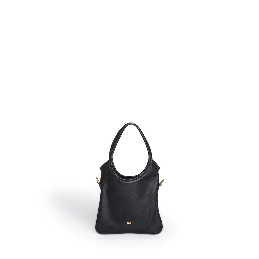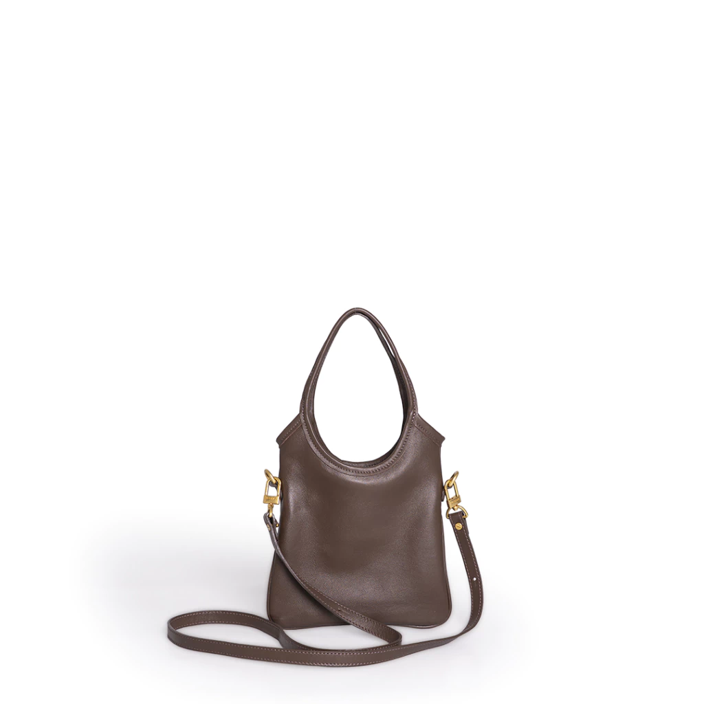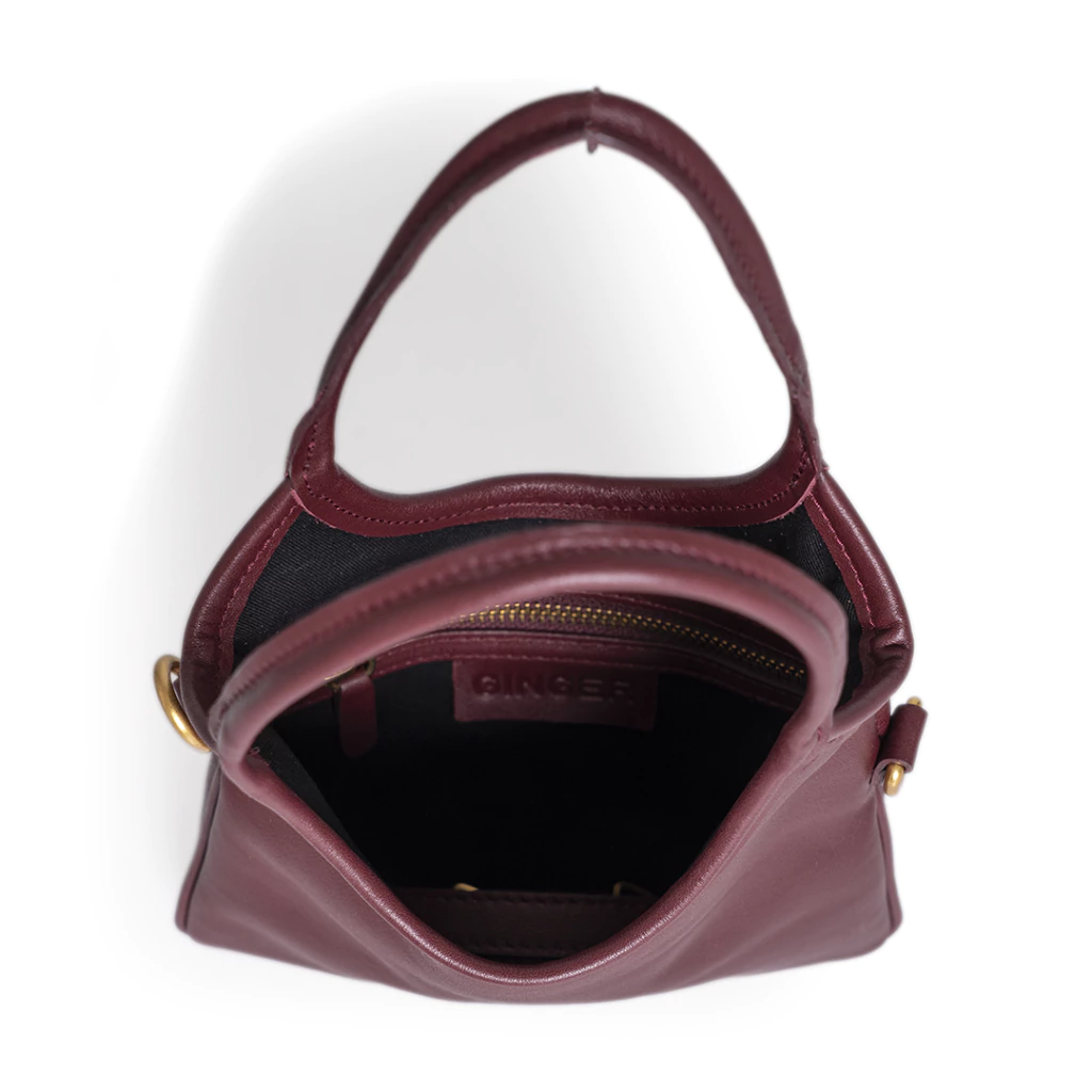 Bandolera de cuero. Trae correa regulable y extraible. Está forrada y tiene un bolsillo con cierre interno