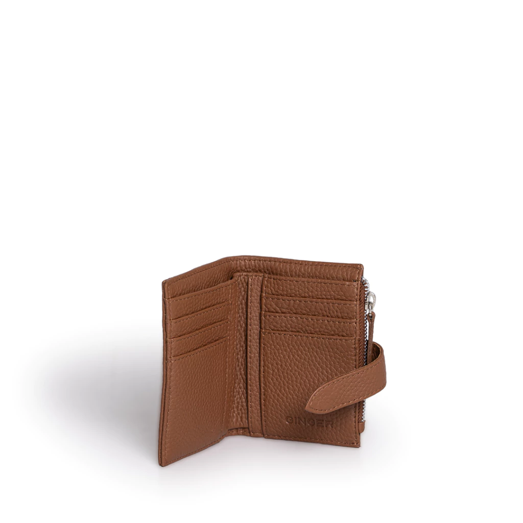 Billetera de cuero graneado. Trae un compartimiento para billetes y 8 para tarjetras. Cierra con un broche iman.