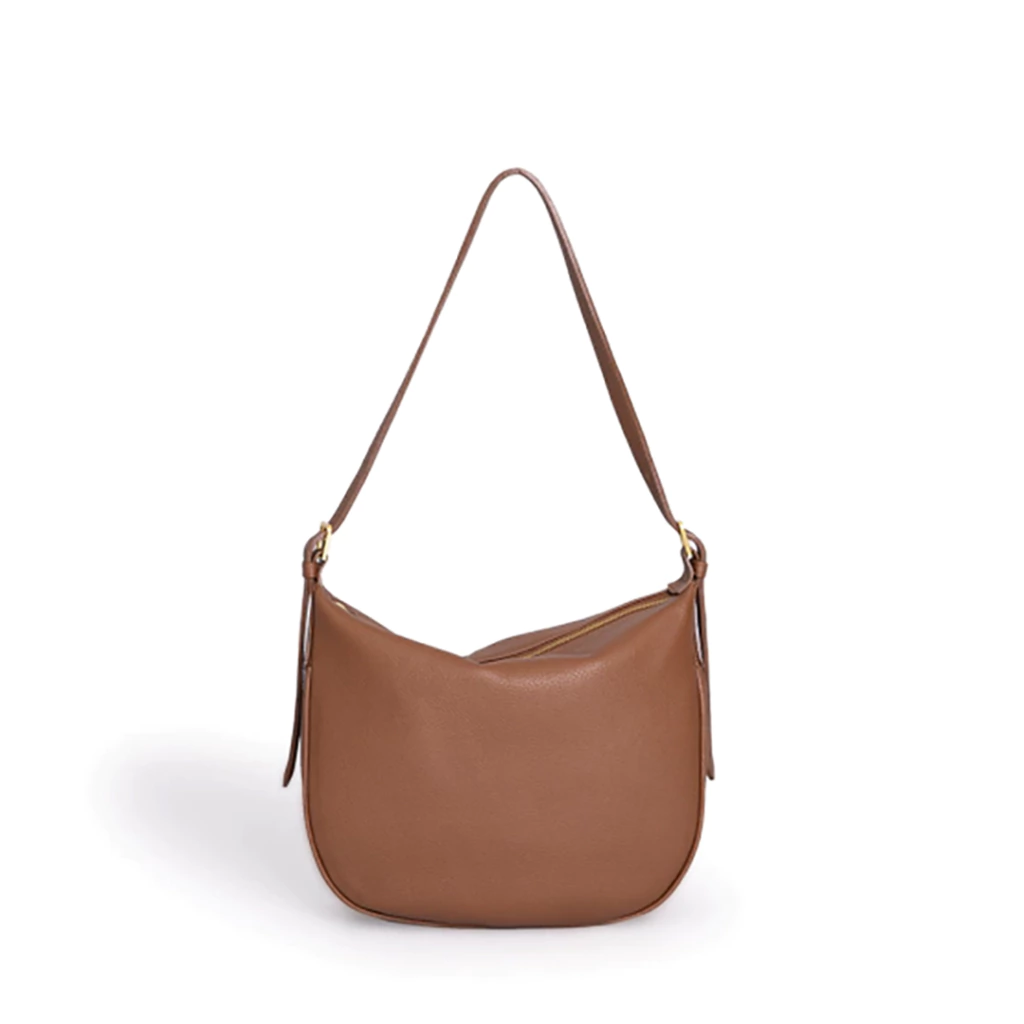 Bandolera de cuero graneado que también se puede usar como cartera de hombro. Con cierre. Trae herraje dorado a los costados de la misma para regular la correa.