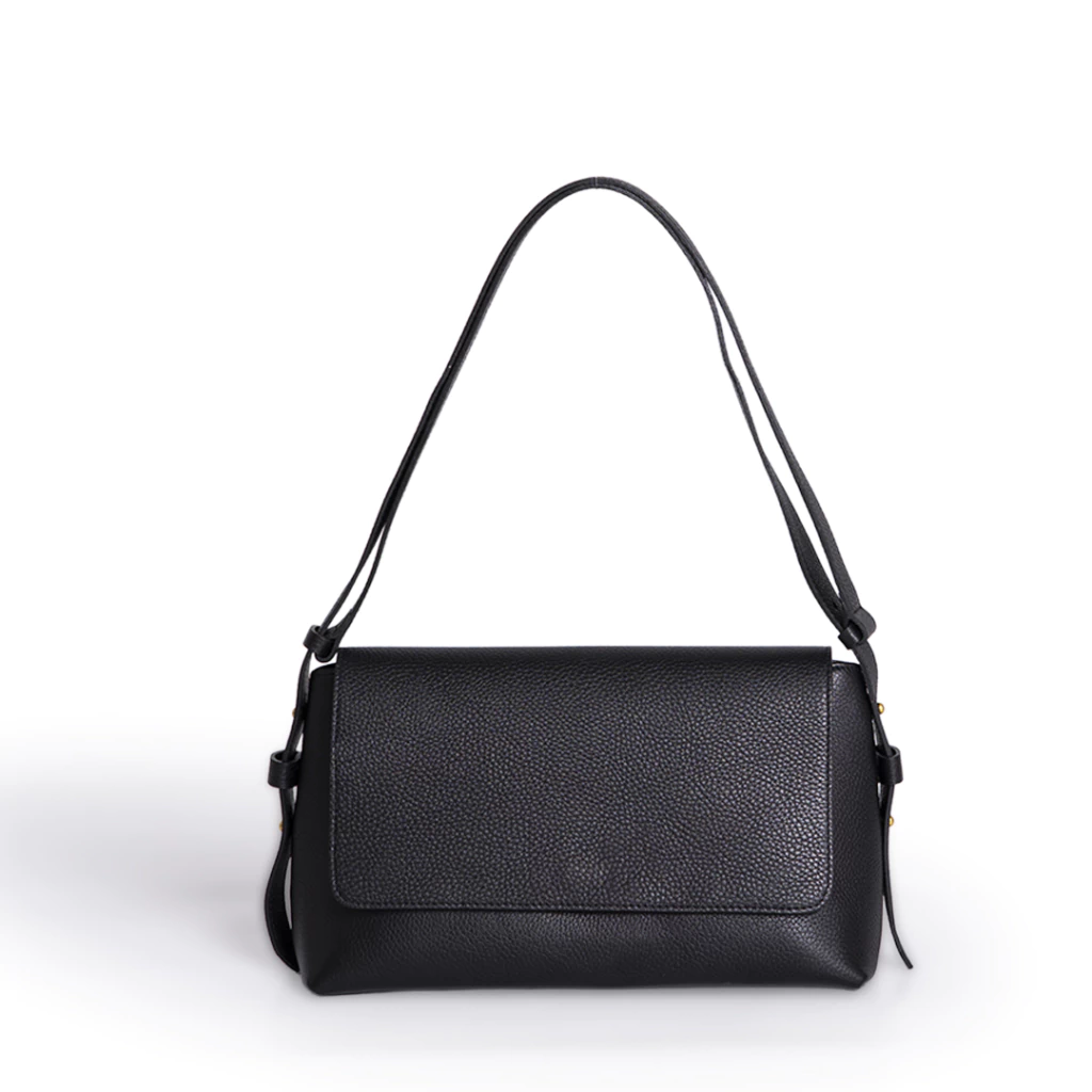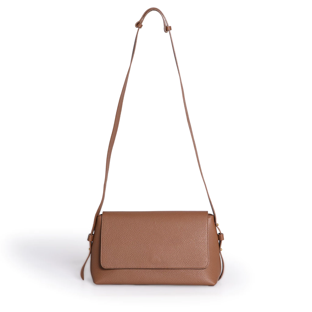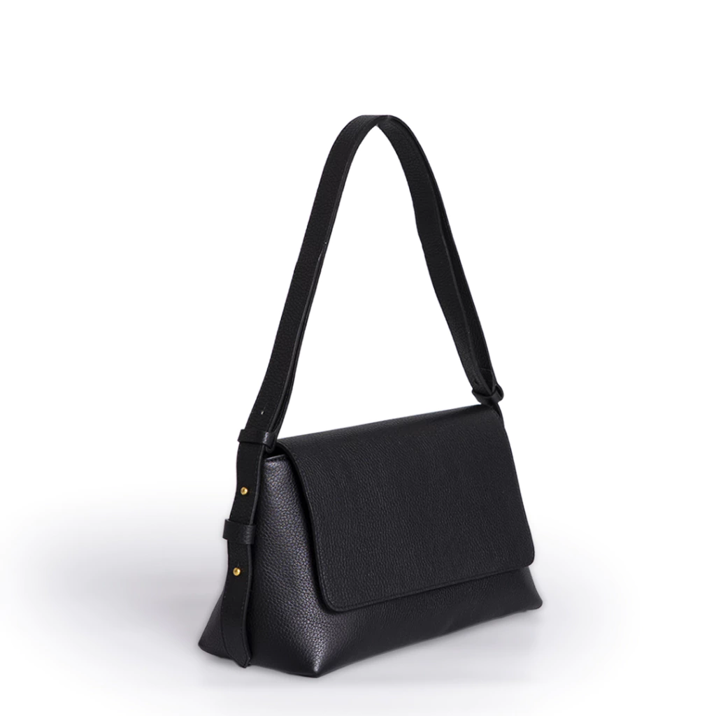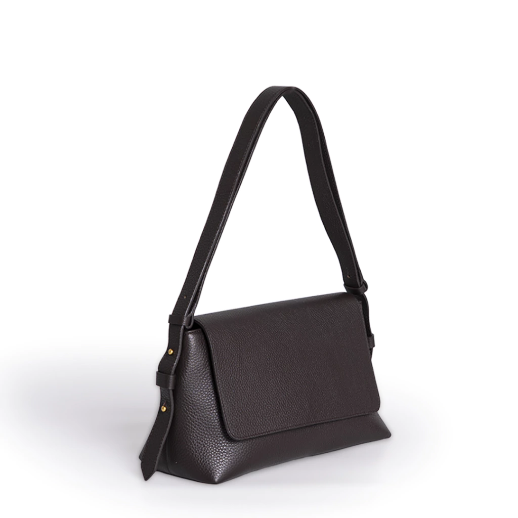Cartera de cuero graneado. La correa es desmontable y regulable, se puede usar tanto de bandolera como de hombro. Esta forrada y tiene un bolsillo interno con cierre. Se cierra con cierre y también broche imán en la solapa.