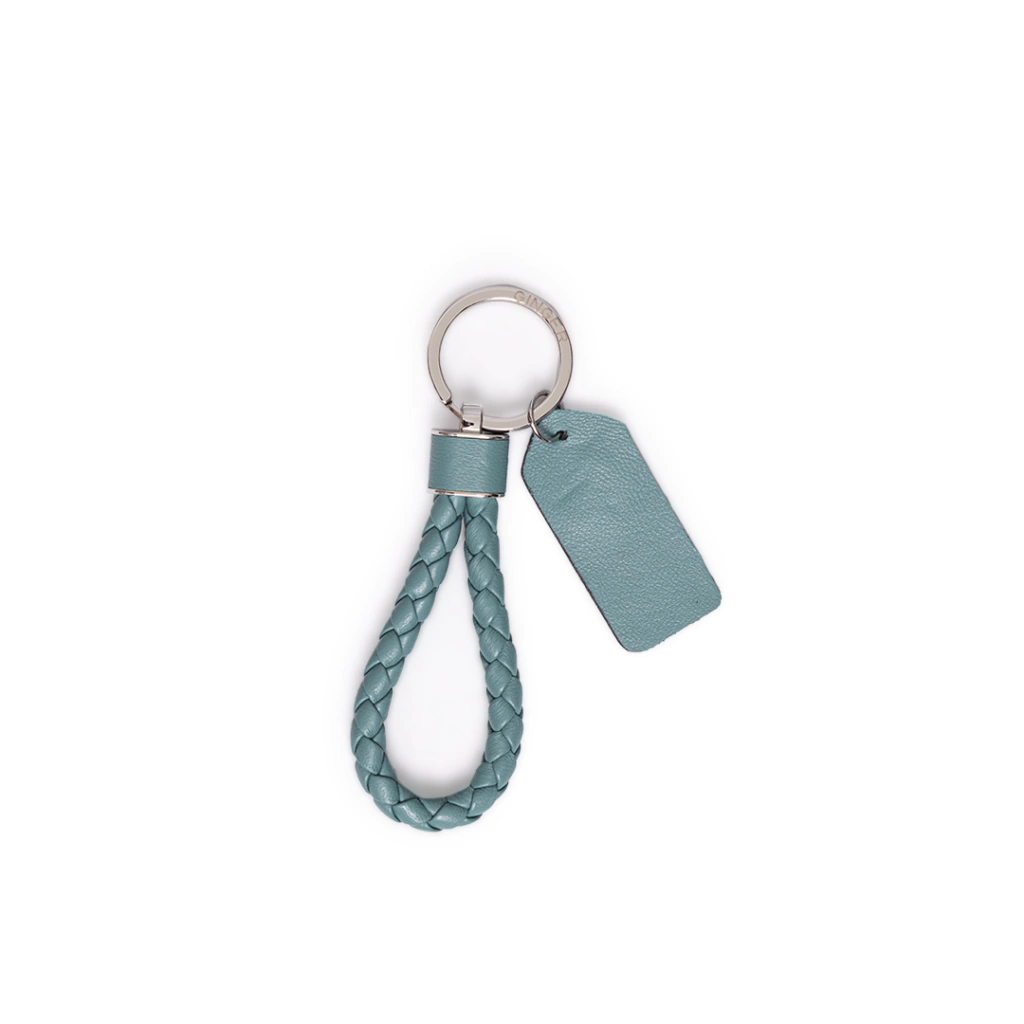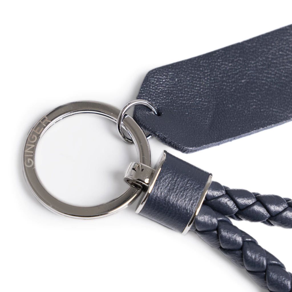 Llavero de cuero trenzado y tag para grabarle las iniciales.