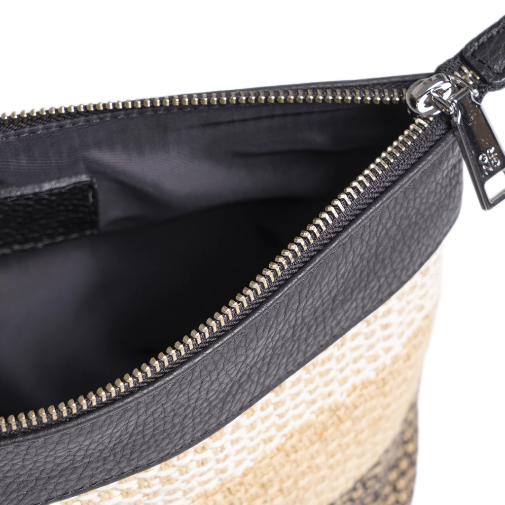 Necessaire de rafia con cuero. El interior es impermeable. Se pueden grabar las iniciales o nombre sobre el cuero.